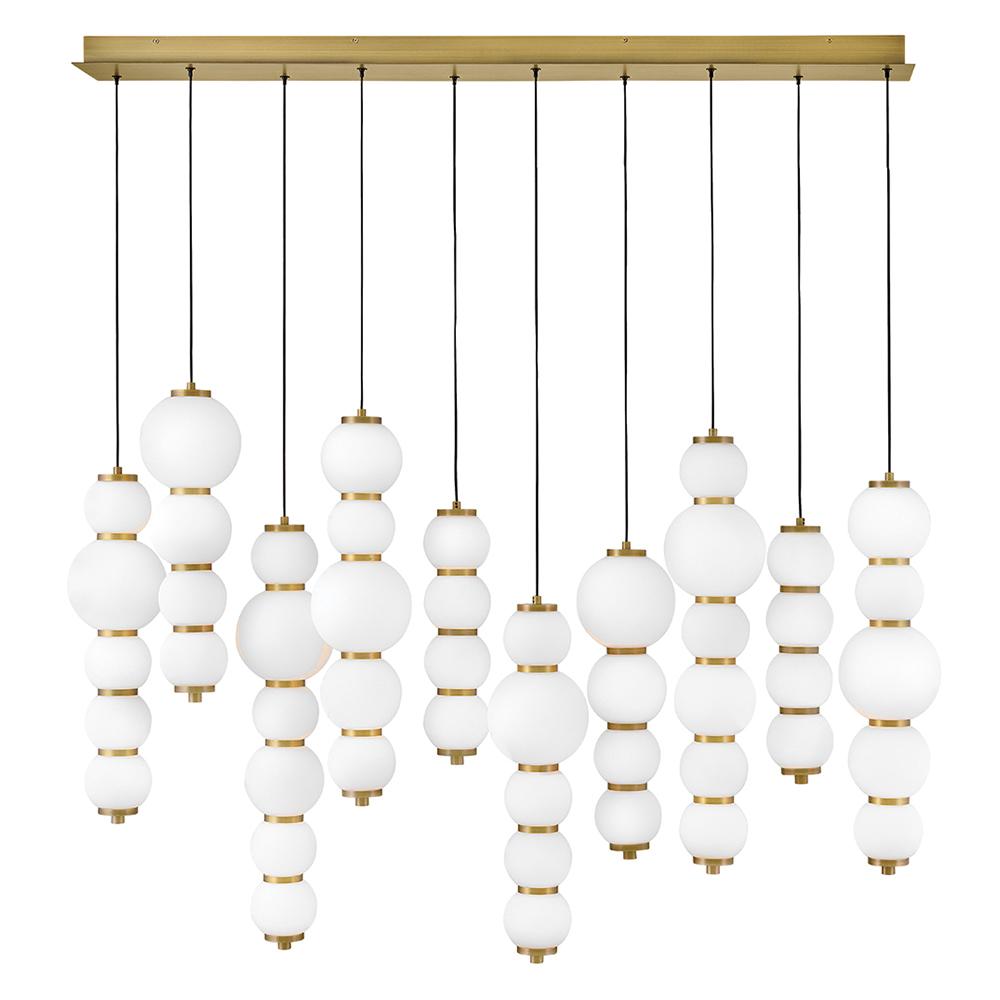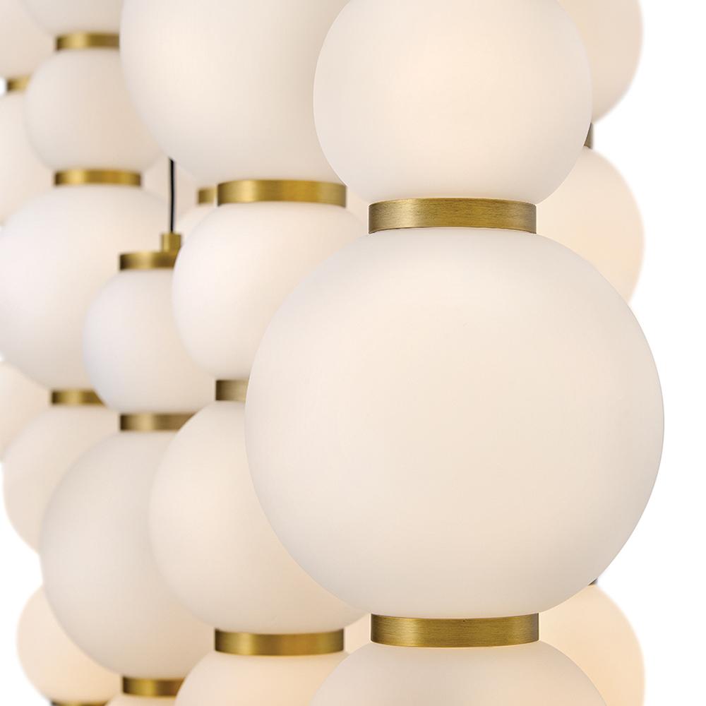 Inspired by the enduring allure of pearl jewelry, Trigo’s softly cascading silhouette makes a dramatic yet elegant statement. Glowing etched opal glass globes of varying sizes create a visual rhythm and organic flow that echo the natural imperfections and unique beauty found in genuine pearls. Differences between each globe add depth and movement, combining classic beauty with modern coastal design and offering a harmonious blend of tradition and innovation.