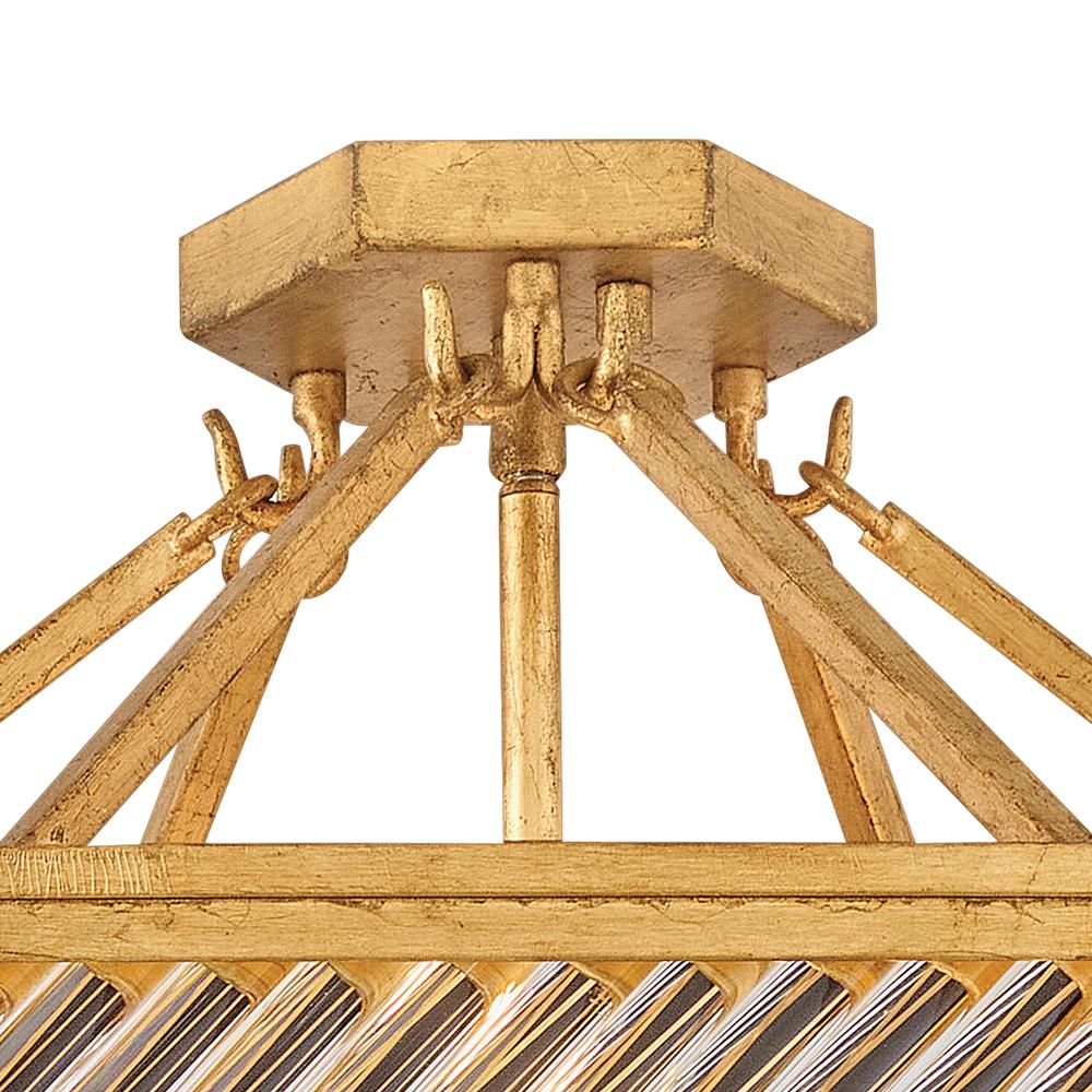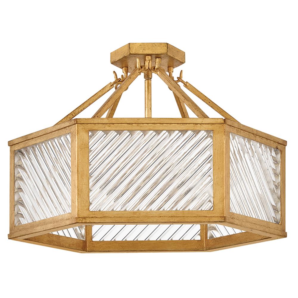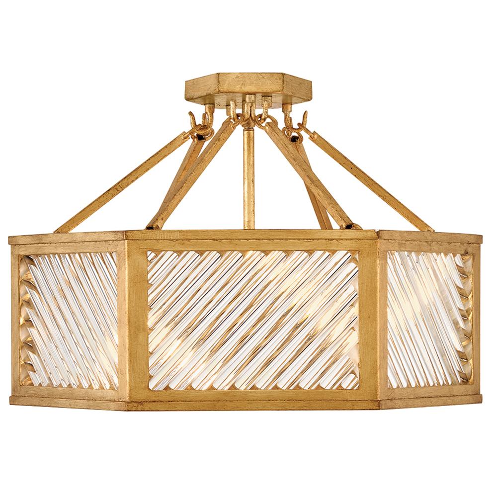 A reimagining of vintage designs from the 40s and 50s, Sura’s transitional, hexagonal Distressed Brass frame creates a glamorous yet understated and tailored appeal. Cylindrical glass rods set at alternating angles echo a soft herringbone pattern, juxtaposing geometry within geometry. Layered details create a reeded effect that is reflective and alluring.