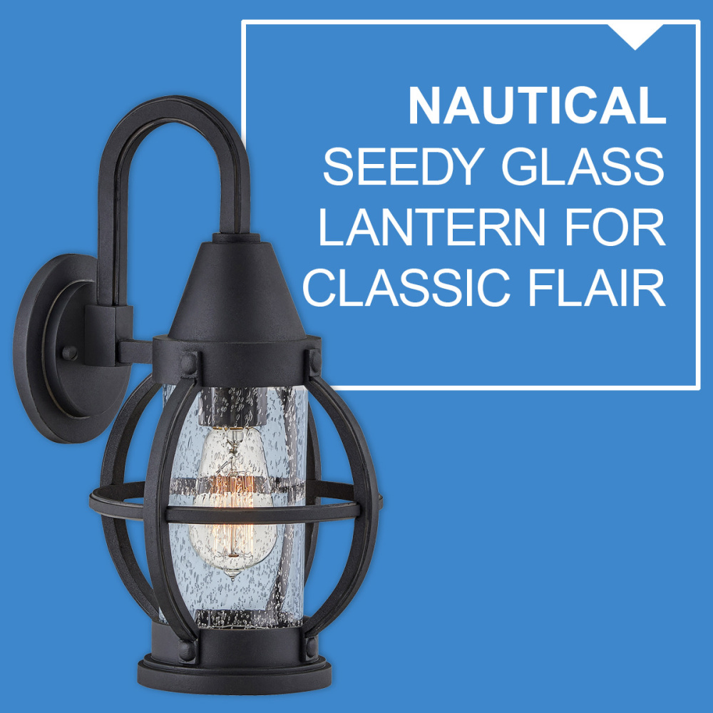Inspired by the traditional onion-style lantern, Chatham boasts a flair of nautical charm. Featuring a refined top scroll arm for a more casual and transitional style, it encompasses a gleaming, nautical seedy glass.Chatham is designed to withstand even the harshest elements. It is available in a Museum Black finish that is resistant to rust and corrosion with a 5-year warranty.