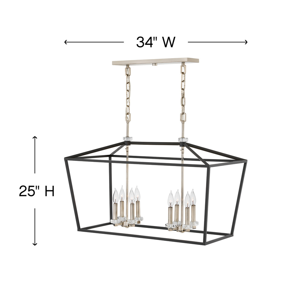 For a classic statement-maker, Stinson hits the mark. A robust open and airy cage, designed for maximum impact in Distressed Brass or Black with Polished Nickel finish, is accompanied by refined sparkling crystal accents to create the perfect mix of traditional appeal and industrial panache.
