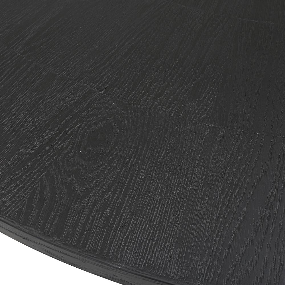 With Clean Casual Styling, This Dining Table Features A Richly Grained Oak Veneer Inlaid Top Finished in A Rich Charcoal Black, Atop A Sturdy Elm Wood Trestle Base. Solid Wood Will Continue to Move with Temperature and Humidity Changes, Which Can Result in Cracks and Uneven Surfaces, Adding to Its Authenticity and Character.