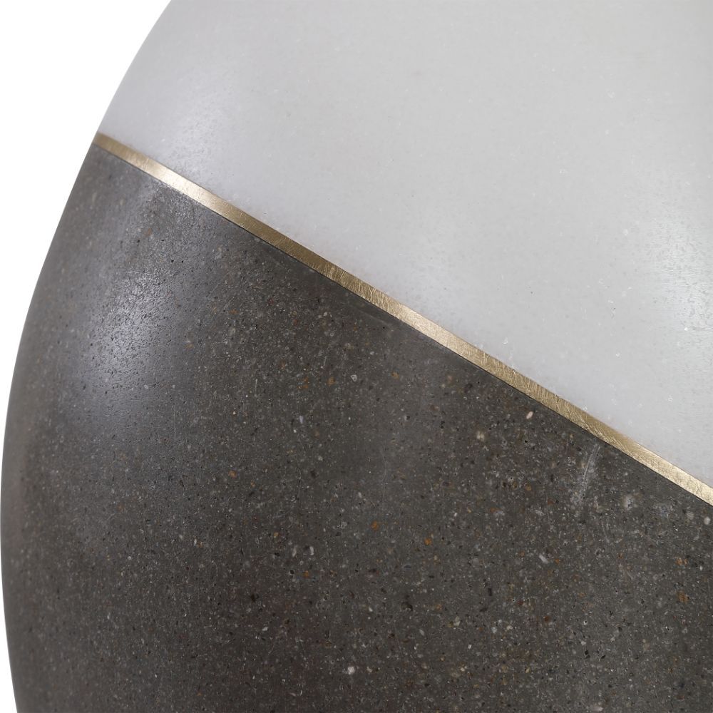 Simple Yet Sophisticated, This Table Lamp Features A Combination of Honed Charcoal Concrete and A Polished White Marble Look, Accented By Brushed Gold Plated Accents. The Lamp is Complemented By A Crisp White Hardback Drum Shade.