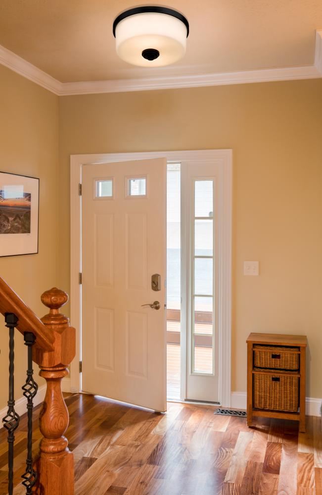 Bathe your surroundings in the graceful illumination that radiates from this two-light flush mount ceiling fixture. Stylishly simple, it boasts a round, matte black frame that creates a striking contrast with its delicate, matte opal shade. This transitional ceiling light is especially ideal for a bedroom, hallway, kitchen, or living room.