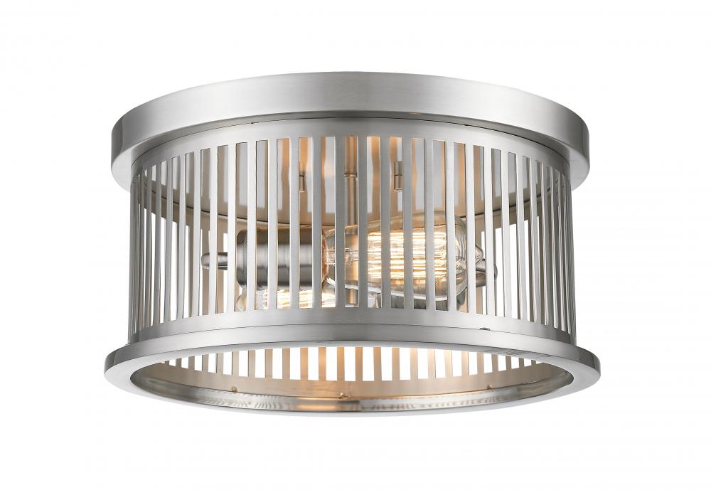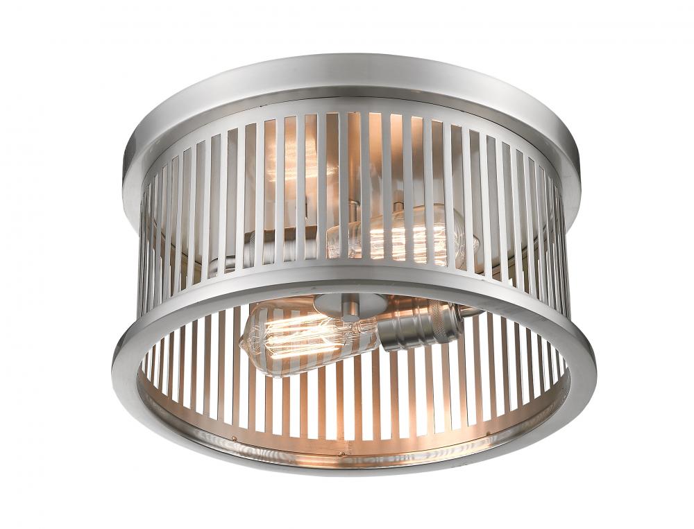 A perfect circle turns vintage charm into a stylish light fixture. With a grid-inspired steel frame and vintage bulbs, this brushed nickel two-light flush mount ceiling light adds a decorative touch.
