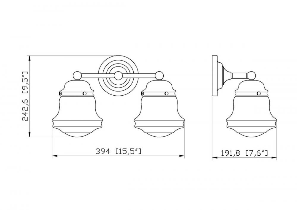 Charming, festive style goes light as it lights up a bath space with this two-light vanity from the Vaughn collection. Illuminate a compact vanity with a themed fixture borrowing from nautical and industrial, formed of matte black finish steel and featuring unique schoolhouse opal glass shades. This light becomes a central focus in a transitional or modern bathroom.