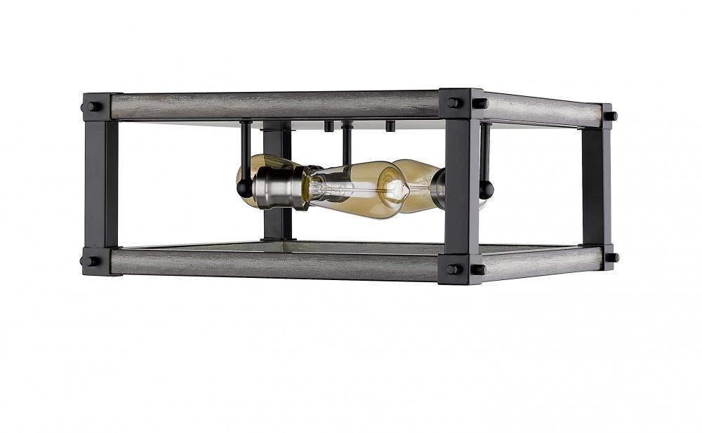 A casual space transforms into a charming rustic haven with this square three-light ceiling light. Blending ashen finish faux barnwood pieces to create a geometric shape, its hybrid industrial and farmhouse look spreads cheer as it illuminates.