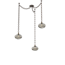 Featuring our popular artisan blown Coppa pendants, this versatile chandelier style enables customization of the placement and height of each pendant. A ribbon of molten crystal glass added during fabrication creates a magical dance of light and color when paired with clear or vintage bulbs.